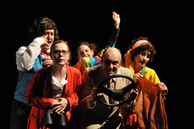Our Secrets, written and directed by Bela Pinter for his company, is set in a “dance house” in the 1980’s when the communist regime sanctioned the Hungarian folk dance revival as an acceptable art form. During that time, the regime also exerted control through a vast network of informers, and it coerced many ordinary citizens to spy on each other. These informers have never been named, and many believe that a number of them hold high offices in the present Oban government. The actors – like many of the actors I saw at the festival- are skilled and versatile. They play multiple characters of different genders and ages, and they are also the musicians and dancers. The back wall of the set is dominated by two giant spools of a tape recorder –they could be playing back music, or secretly recording conversations, or grinding relentlessly like the enormous machine cogs in Charlie Chaplin’s Modern Times. The end of the play jumps ahead in time: an informer who has destroyed his friend is now Prime Minister.