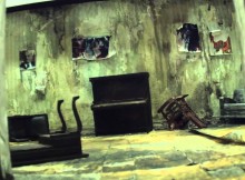 It was a practical decision since there was no way they could match a game like Call of Duty’s sophisticated virtual reality engine through, say, video. But when they started working on the production, Ogawa quickly realized it was problematic (or at least underwhelming) to try to capture these perceptional shifts through mere lighting. Jeanette Oi-Suk Yew, Ogawa’s long-time lighting and video designer, proposed they find a dramatically different solution, which ultimately led scenic desiger Jian Jung, unsurprisingly an excellent model builder, to reconstruct the apartment set as a model which was filmed using extremely small-scale medical cameras, creating a distinctive and rich aesthetic alternative to trying (and failing) to mimic video games.