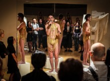 And that makes it doubly troubling when Ferver stages her quite savage murder. Not only is violence in this performance reserved exclusively for a female body, but the only sound the female performer actually makes on stage is the sound of being choked and beaten by a man. After thrashing around backstage for some time in her gasping death-throes, Mola finally drags herself out onstage to artfully cast her dead-self across the floor, all smeared make-up and exposed breasts, in the sort of image that draws ire when fashion photographers employ it (as they frequently do).