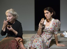 The story of Savannah Bay unfolds in a novelistic fashion, leaving it up to the reader’s imagination to create the central scene which both women take turns in describing. As an ode to storytelling, this play slips between realities and chronologies like a lithe swimmer, leaving it to the audience to figure out the linear version of the story. This storytelling hinges on moments, rather than building dramatic action. Its ability to make you regard an event that you don’t see depicted on stage but rather only hear described, and then to make that event the most important part of the larger story being told, is magical. The action on stage matters less than the action you personally imagine collectively as an audience, thanks to the characters’ descriptions. If you are looking for a plot, this type of piece can be frustrating, but if you lose yourself in the swells of detail, it is a sensuous experience. (I learned the word “houle,” [“sea swell”] while studying this play in Paris, and its onomatopoeic whistle does much to describe the flow of this play’s storytelling.)
