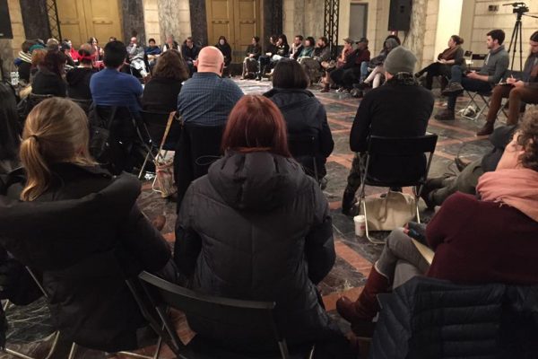 Rosy then asked Emily Johnson to share about her work. Emily Johnson would be hosting Umyuangvigkaq – a Durational Sewing Bee and Long Table discussion as part of PS 122’s COIL Festival the next day (see Dispatch Day 4). She spoke of her time at the Standing Rock reservation as witnessing a resistance that was based in a continuum and ceremony, a single moment within 500 years of resistance and a war that continues. She acknowledged this resistance –the Native American Realness gathering and related discussions and protests. There were other examples of ways to bring the discussion before or after performance works. The idea of supplying reading lists along with performances was offered from Jaamil Olawale Kosoko. A speaker commented on writers who write about our culture, but they never approach us. They just assume things, they pull from us and take away. Sara asked How do we, those people in positions in power, how do we handle failure publicly? How do we hold ourselves accountable and acknowledge that? Acknowledging that the spark for this conversation, was when she entered this discourse online and it felt like a personal failure in co-running a program. If I value equity, if I value being inclusive, value having respect for cultures other than my own, what was happening online revealed a failure to me. A response included noting that NYC has the largest indigenous urban population and in the spirit of building trust and community there is work happening. Redface is not unique to the dance community. Wooster Group and Canadian author Joseph Boyden (his Indigenous identity is being questioned) were mentioned as examples in theater and literary circles. Reaching beyond the non-profit sector, expanding to corporations and governments that perpetrate institutional racism was made important. The language we use is important. Someone spoke to the centuries of things taken from us and beaten into us. There were several statements about value and the need to share our people’s stories. Being documented as not-human, less than human and spending the past 500 years trying to prove we’re humans. At the end of the day when there is a battle it still goes back to that we’re seen as less than human. The system has devalued our art our ceremonies, our dances are seen as “less than” unless there is money to be made from it. The reason we’re called Indians or Native Americans is because we meant so little that [the larger We] couldn’t be bothered to learn our different names.