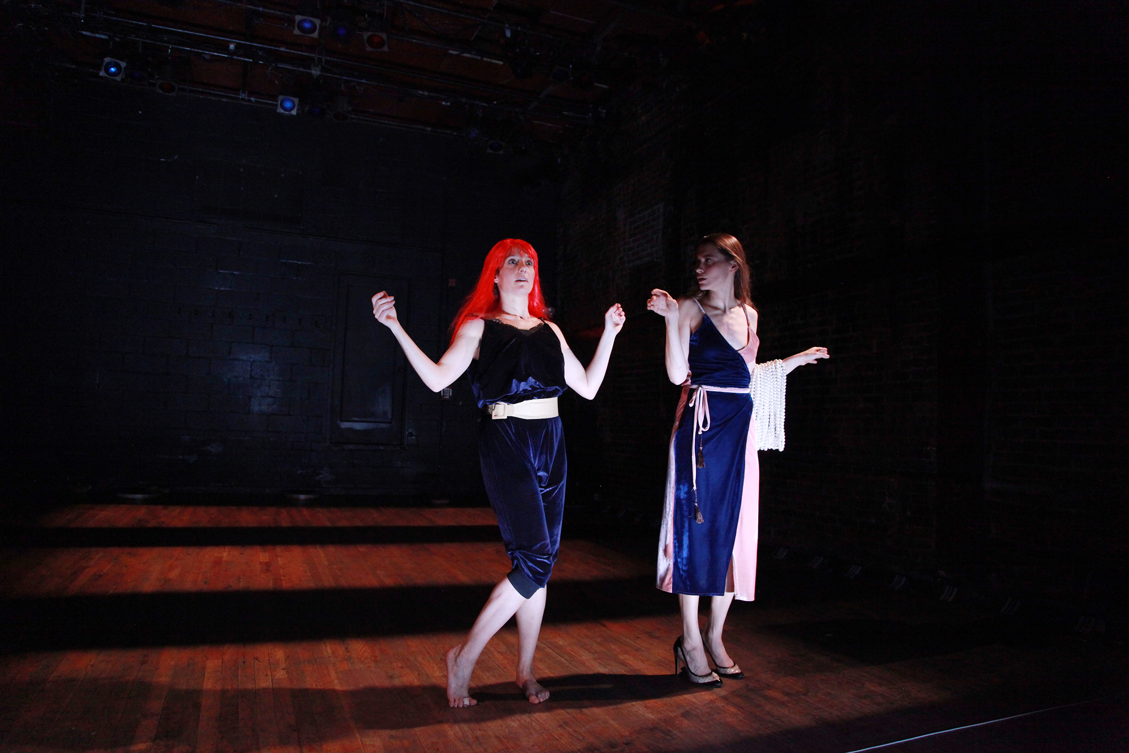 A couple weeks ago, fellow Great Jones Rep member, Sara Galassini premiered her collaboration with Sophie Borolussi in The Club. So, while Nicky continues plotting his pieces and peoples de resistance other artists continue to fill out that beloved upstairs “underground” with their own antics. Program notes described it as “part wrestling match” and a “physical and vocal call to liberate the…silenced woman.” It’s not an easy thing, this dismantling of the patriarchy we’ve inhabited our entire lives. In “One-in-Themselves,” two European white women tackle the entrapment of, according to the program, their “desire to be wanted” and their “rejection of objectification.” An admirable and honest conundrum to admit to and explore in this work, though neither Sophie nor Sara ever fully escape the dominance of their very beguiling natures. Both are experienced performers and compelling to watch. I could gaze at Sara in a wig reciting anything for the sheer aesthetic pleasure of watching a beautiful performer. The work showcases much of their obvious charisma, but that very appeal could make the escape from their objectified selves all the more challenging. Emancipation is not an easy process, nor one without wounds, and in the end, after Sophie has disrobed and placed her body under focused magnification and spotlight, it is clear she is still fighting the good fight. It’s not the unapologetic, intersectional feminist intervention against the rampant misogyny that has been made unrepentantly public in the domain of pussy-grabber-in-chief’s beloved “lock her up” base. But, artistic recourse continues to arise and knowing that Sara also does work with refugee communities in Europe, I know, on other shores, she’s a real hero.