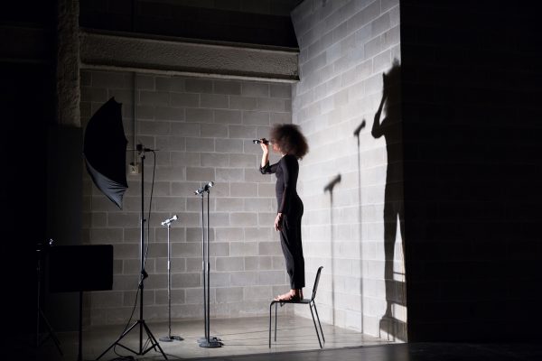 My friend Gilbert Reyes and I talked zombie theory almost the entire way up, so an opening sequence with Tara Willis, Marguerite Hemmings, Jessica Pretty and sound designer Jeremy Toussaint-Baptiste slowly walking from the back wall towards us started in an apocalyptic place, but the work soon drew me in and out of both contemporary realities and fantastic realms. It was impossible to escape thoughts of incarceration with all the concrete and an automatic door that came down, psychically locking us in once we were all seated. However, as the performers moved towards us, I felt increasingly compelled by each of them, not wary. I wondered about the different tonalities of their expressions, the variety of sweet, stoic, regal or pensive appearances and whether each artist had chosen a particular set to their lips, focus to their eyes and emotionality to their performance. The closer they got, the more the work actualized the intimacy of the written inspirations. Firmly fixed inside of hard edged structures, but expansive in vision and imagination, the magical mind of Will and his collaborators took flight.