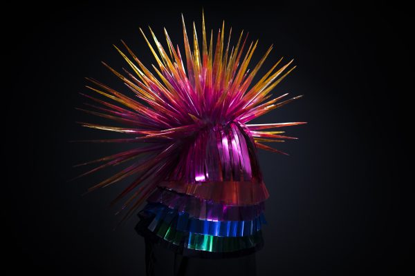 Similarly, aspects of the set design, created by lighting, scenic, and installation designer, Kathy Couch, viscerally annoyed me. The shiny mylar backdrop reflected stage lights directly into my eyes, causing me to shield them and miss moments of the dancers’ movement. The mylar also reflected light all over the theater’s other walls, throwing my line of sight in various directions, expanding the width and depths of the stage beyond the theater’s solid walls. There were times when everything seemed to be moving like a kaleidoscope of color and lights.