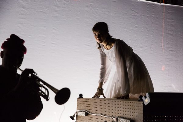 A Chronicle of the Madness of Small Worlds is actually, originally, a work of fiction – a novel, published in 2008. This is also to say, it was originally intended to be read, not heard, resulting in a different sort of madness when occurring on the page rather than stage. Elena Araoz, the director, has taken it upon herself to raise these particular two stories into the realm of the performative, with remarkably positive results. The performances themselves are impeccable, spectacular; it’s only when noticing one of maybe two tiny verbal stumbles during the evening that one is reminded just how impossible this language is to make sense of, to speak, to perform – and so the performances themselves are a marvel, virtuosic, yet under-stated in the way they must be in order to allow room for the audience to participate in the world-building (again: “Walking Telephone” – the performer’s job is to speak it, your job is to imagine it.)