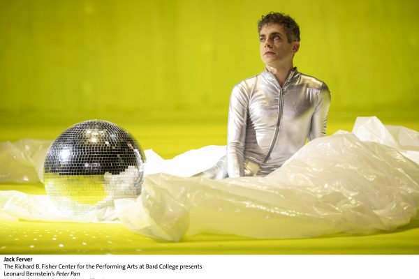 When the Scottish novelist and playwright J.M. Barrie supplied the dialogue “This is queer!” to the pirate character of Smee, who calls it out while being verbally accosted by an unseen Peter Pan in Barrie’s 1904 play, it’s difficult to ascertain whether Barrie was mining its newly emergent duality of meaning (what would eventually come to refer to sexual and gender minorities who are not heterosexual or cisgender) or simply indicating that the action of the moment was “strange” or “not quite right,” more in line with the common usage of the word at that juncture in history. With regards to the current production though, which plays at Bard through July 22nd, the emphasis on that particular utterance (it’s now shouted in unison) amid a heavily-abbreviated script can only be read as fully intentional. (The play has been trimmed down to a ninety-minute run-time, which includes the entirety of the Leonard Bernstein music and songs that provide impetus for this production; Bernstein’s music is being celebrated world-wide this season in recognition of his centenary year.) The re-purposing of the word queer serves to highlight the chasm of space that exists between the original world of the play (1904), the Bernstein musical (from 1950, when the play and music premiered on Broadway for the first time, almost immediately eclipsed by the Mary Martin musical version that would come along four years later), and of this postmodern moment of “now.” That space – absence, even – is made manifest, physicalized, embodied, then turned against itself in Leonard Bernstein’s Peter Pan.