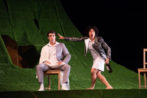K: A moment for me where we did achieve that in the play is where Luverne Seifert, as Polybus, is just napping onstage. And we have an extended moment where we’re just watching a man asleep, and snoring, and we’re listening to the rhythm of that, while the sounds of sheep echo his snoring.