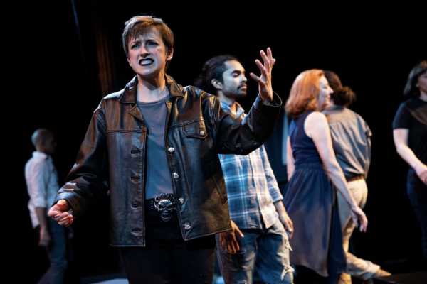 Darcelle is the most critical presence in Harriet’s life, in both senses of the word: she plays a huge emotional role and is overtly critical of Harriet’s thought processes. Darcelle is invested in fostering Harriet’s career despite having her own as a science teacher. Darcelle’s investment doesn’t seem fair, particularly considering she’s a woman of color. In fact, Darcelle highlights one of the play’s many blind spots. Though Misconceptions has traces of self-awareness, the traces are limited and ultimately reveal themselves as dated. When Darcelle points out how White Harriet’s abortion project is, she is burdened with the role of educating Harriet while being siphoned off into a secondary role and fulfilling a historical stereotype of the “Black best friend.” After being confronted by Darcelle, Harriet exclaims that she hates feeling ignorant. I felt both confused and uncomfortable by this remark. Harriet is meant to be a radical performance artist (she wears black lipstick, doc martins, and a leather coat) living in 2023, but her confession was so unaware and self-indulgent– and yet it was also a moment of vulnerability and confession whose sentiment lingers in all of us regardless of changing mores of political discourse. But then is this play really about the interaction between characters or is it about Harriet’s interiority? The datedness of Harriet’s thought made the chronology of this play, in 2023, implausible. When researching Wangh, I saw on his CV that Misconceptions was actually written in 2017. It was meant to debut in 2020 but was delayed due to COVID. During its delay, Roe was overturned, a quite remarkable coincidence for a play about abortion, and yet, this “opportune” event wasn’t really accounted for. Roe is an afterthought, a sort of passive footnote to try to contextualize this project, and the pandemic carries the same soggy presence. Suddenly the age of Wangh’s project, the many years in which Misconception had come to be, started to feel like the actual foundation of this play. The way abortion was discussed with such reverence and detachment felt retro, although this may be the limits of Wangh’s standpoint, no matter how compassionate a partner he may be. The final large and rather glaring blindspot of the play is gender. The play is entirely about cis-gendered people, which is okay, but it’s a decision with a contextual consequence. Discussions of abortion as a procedure for cis-gendered women place the discussion in an era before we accounted for the divergence from a gender binary. Today there’s some sort of collective understanding that any body with “necessary” organs for reproduction are threatened by the prospects of an unplanned pregnancy. Attempting to fit this play into contemporary times places such a burden on the narrative that it starts to betray itself. The reversal of Roe could have been a further impetus for Misconception’s run, but it is not what’s playing out on stage.